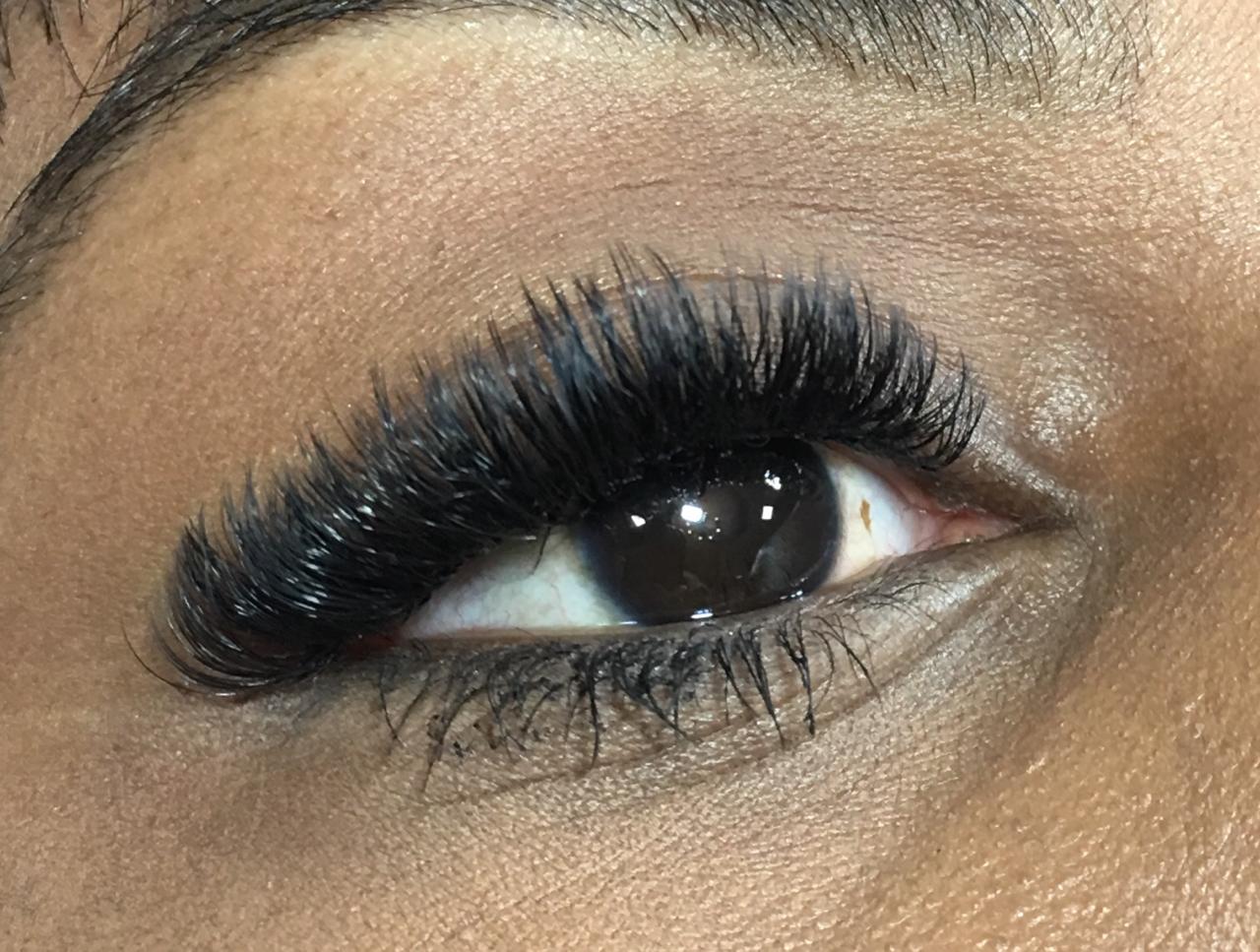 Extensões de cílios fio a fio.