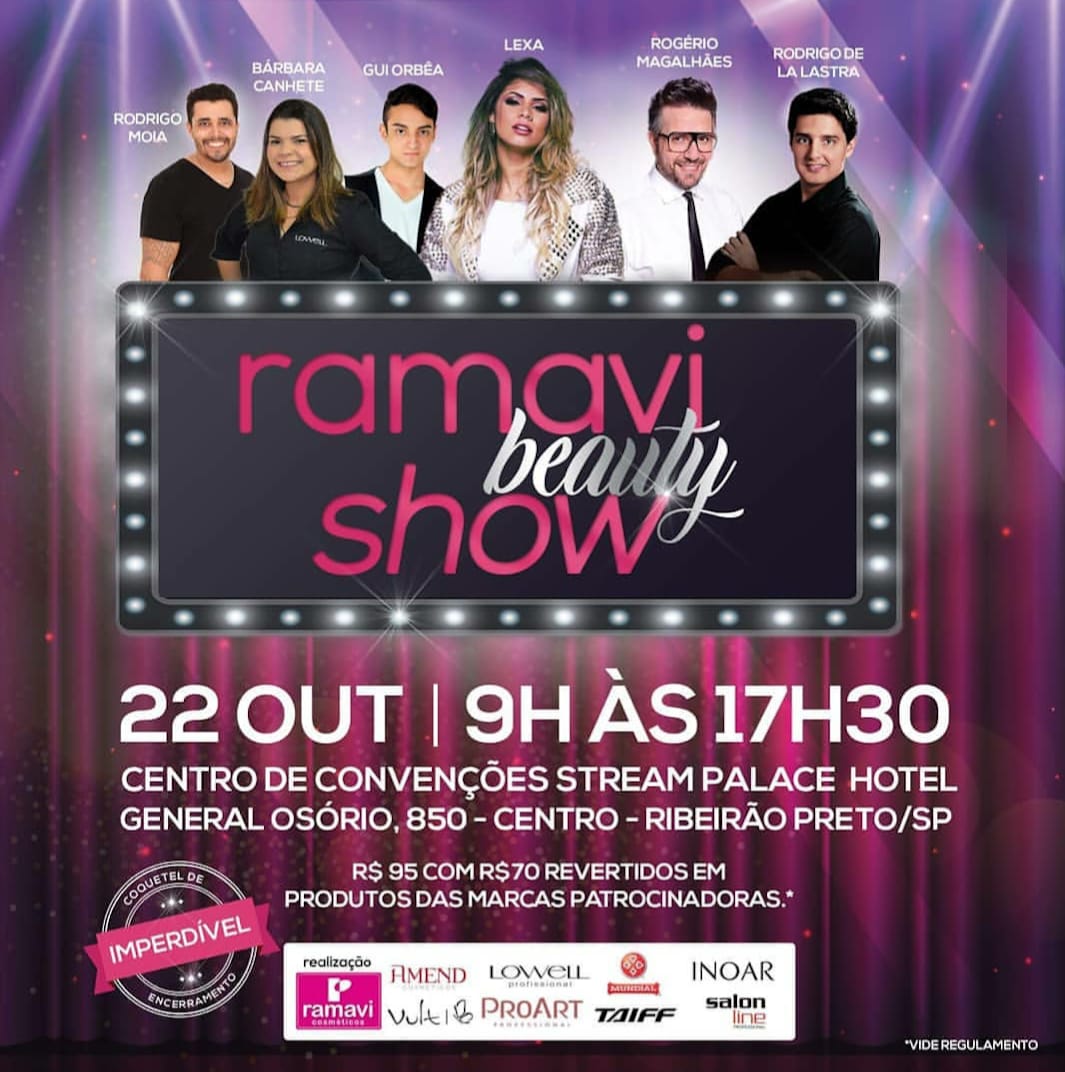 Acontece nesta segunda feira das 9h às 17h30 no Centro de Convenções Stream Palace Hotel em Ribeirão Preto o RAMAVI BEAUTY SHOW.