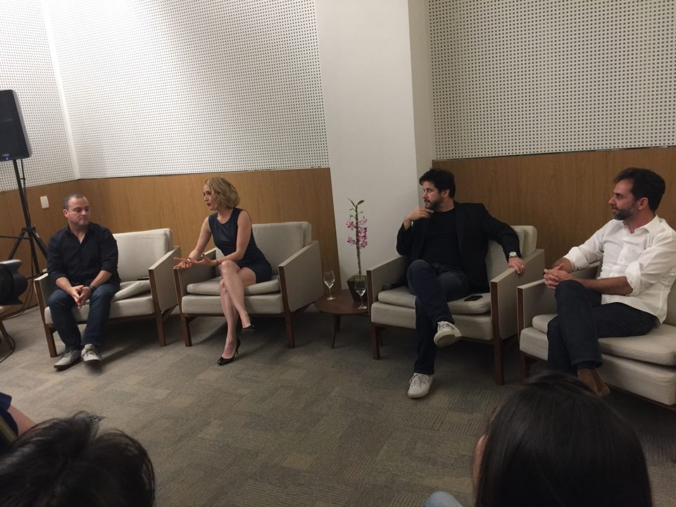O roteirista Paulo Cursino com os atores Murilo Benício e Camila Morgado e o produtor LG Tubaldini Jr.