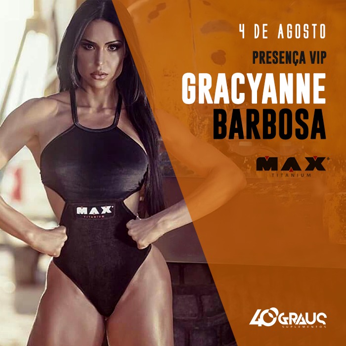 Há cinco anos em Ribeirão Preto (SP), a loja 40 Graus Suplementos, preparou um evento incrível para você que é fã e acompanha o trabalho da musa fitness Gracyanne Barbosa. No dia 4 de agosto, haverá um coquetel aberto ao público, com degustação de produtos da Max Titanium e a presença da musa.