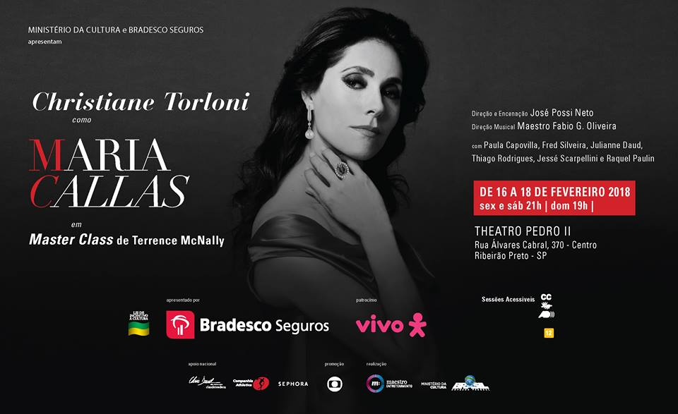 “Master Class” é uma comédia dramática escrita pelo premiado autor norte americano Terrence MacNally. O autor baseou o enredo nas lendárias aulas magnas proferidas pela grande soprano Maria Callas no início dos anos 70 na Julliard School of Music de Nova York. Na peça, Callas repreende os alunos da mesma maneira enérgica com que os encoraja ao mesmo tempo em que confronta os desapontamentos e dissabores de sua própria vida e de seu relacionamento com o bilionário grego Aristóteles Onassis. De forma genial e habilidosa o público ri e se emociona com este que é considerado um dos melhores textos teatrais de todos os tempos e que segue comovendo e divertindo plateias de todo o mundo! Christiane Torloni foi indicada a diversos prémios entre eles o prémio Shell de melhor atriz. Venceu o prémio Aplauso Brasil, o Prémio da Revista Quem e o Prémio Arte Qualidade Brasil.