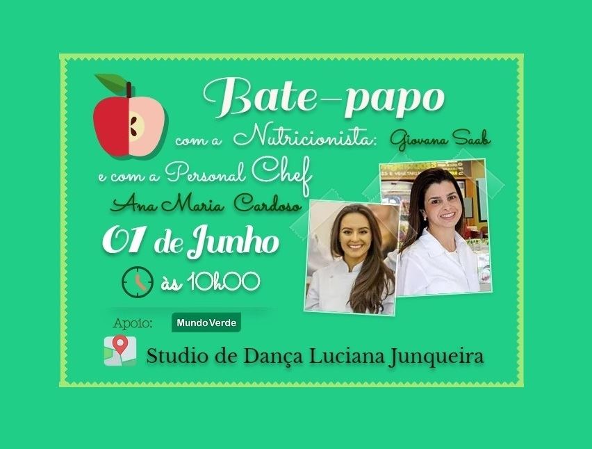 Studio de Dança Luciana Junqueira convida à todos, pais e alunos, para a primeira palestra sobre Nutrição e Gastronomia.