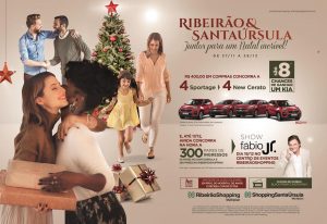 Dinâmica: R$ 400,00 em compras nas lojas participantes dos dois shoppings dão direito a um cupom para concorrer aos sorteios de 8 carros 0 km, sendo 4 Sportage e 4 New Cerato, da marca Kia, sendo dois modelos de cada um para cada shopping; aos sorteios instantâneos de 300 pares de ingressos para o show do cantor Fábio Jr., sendo 50 pares no SantaÚrsula e 250 pares no RibeirãoShopping, que acontece no dia 19 de dezembro no Centro de Eventos RibeirãoShopping; e quem comprar durante a Black Friday, dia 29 de novembro, ganha cupom em dobro; quem seguir o perfil dos dois shoppings no Instagram (@ribeiraoshopping / @shoppingsantaursula) também ganha cupom em dobro